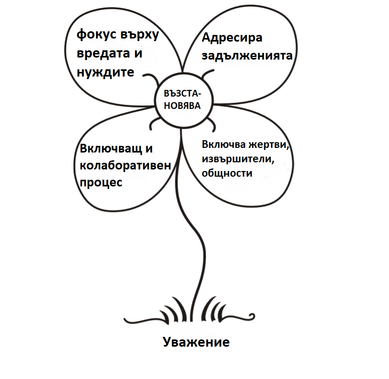 Както вече знаете, възстановителното правосъдие (ВП) е начин за реагиране на престъпления, конфликти и несправедливост. ВП е за справяне с основните причини на един конфликт. Възстановителният подход е подходящ за справяне с много видове нарушители и престъпления, включително леки и тежки престъпления. Въпреки че възстановителното правосъдие може да бъде използвано в различни форми и за различни престъпления, то се основава на някои общи цели, принципи и ценности. Основите цели на програмите за възстановително правосъдие са: