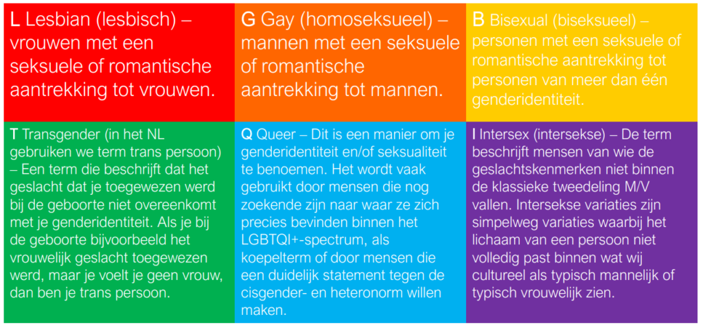 … het belangrijk is om de juiste afkorting te gebruiken in de juiste context? Heb je het enkel over holebi’s, gebruik dan de afkorting LGB; wil je zo breed en inclusief mogelijk zijn, gebruik dan één van de afkortingen met een + achter.