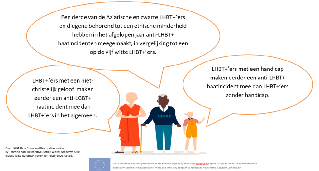Zoals je hebt kunnen lezen kunnen haatmisdrijven serieuze gevolgen hebben voor slachtoffers. De kans om slachtoffer van een anti-LHBT misdrijf te worden, wordt vergroot wanneer iemand ook behoort tot een andere minderheidsgroep.