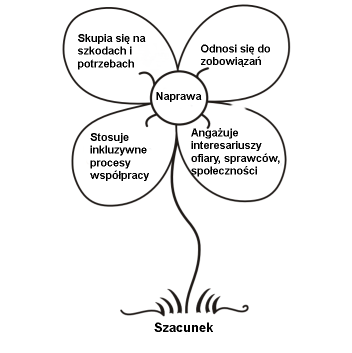 Obrazek zawiera graficzne przedstawienie sprawiedliwości naprawczej. Przyjrzyj się mu.